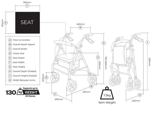 Aidapt Aluminium Folding Rollator with Seat & Crutch Holder – Lightweight Mobility Aid
