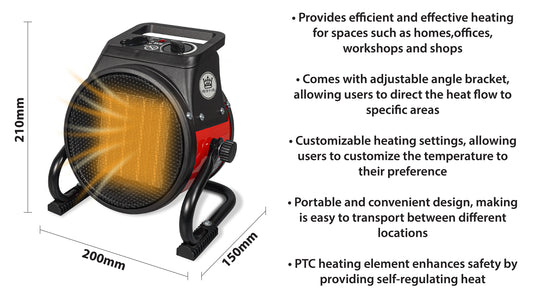 Prem‑I‑Air 2kW PTC Fan Heater – Portable Fast‑Heat Ceramic Room Heater with Adjustable Thermostat
