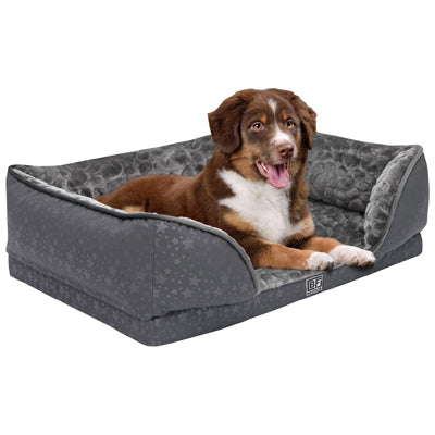 Orthopedic Couch Pet Bed with Egg Crate Bamboo and Memory Foam, Large - Charcoal