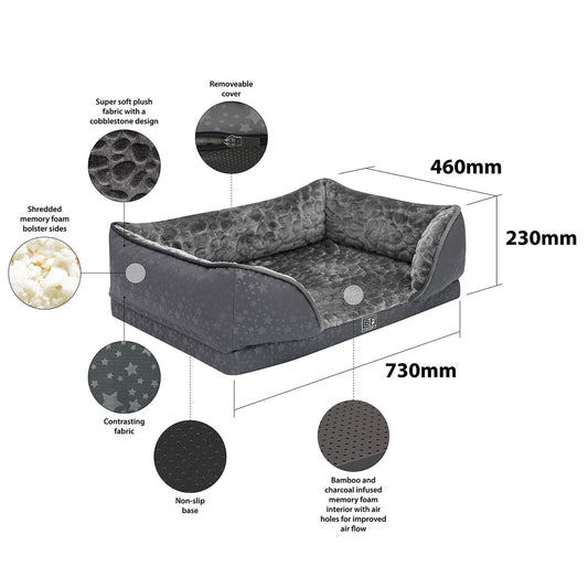 Orthopedic Couch Pet Bed with Egg Crate Bamboo and Memory Foam, Small - Charcoal