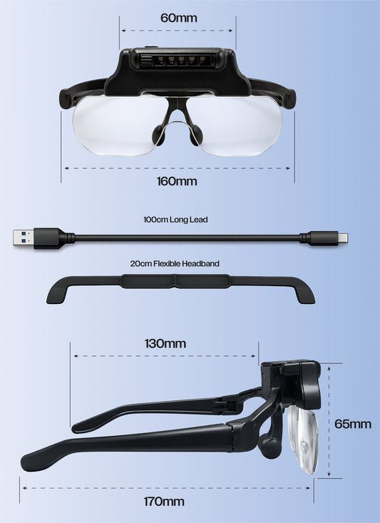 LED Head Mount Magnifier Glasses with 4 Detachable Lenses