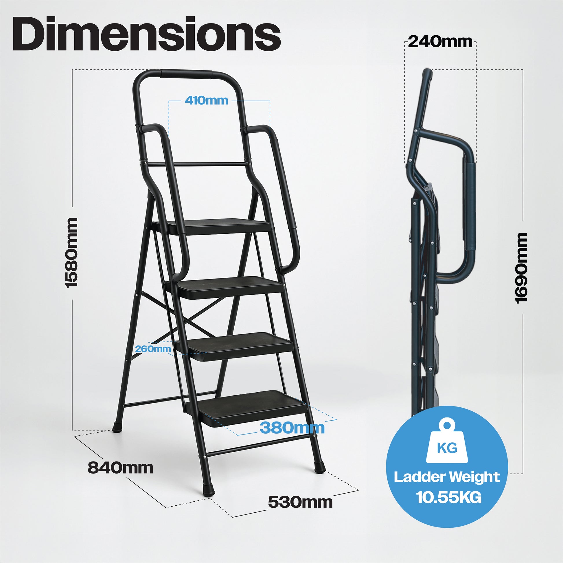 Bestfor 4 Step Ladder with Handrails
