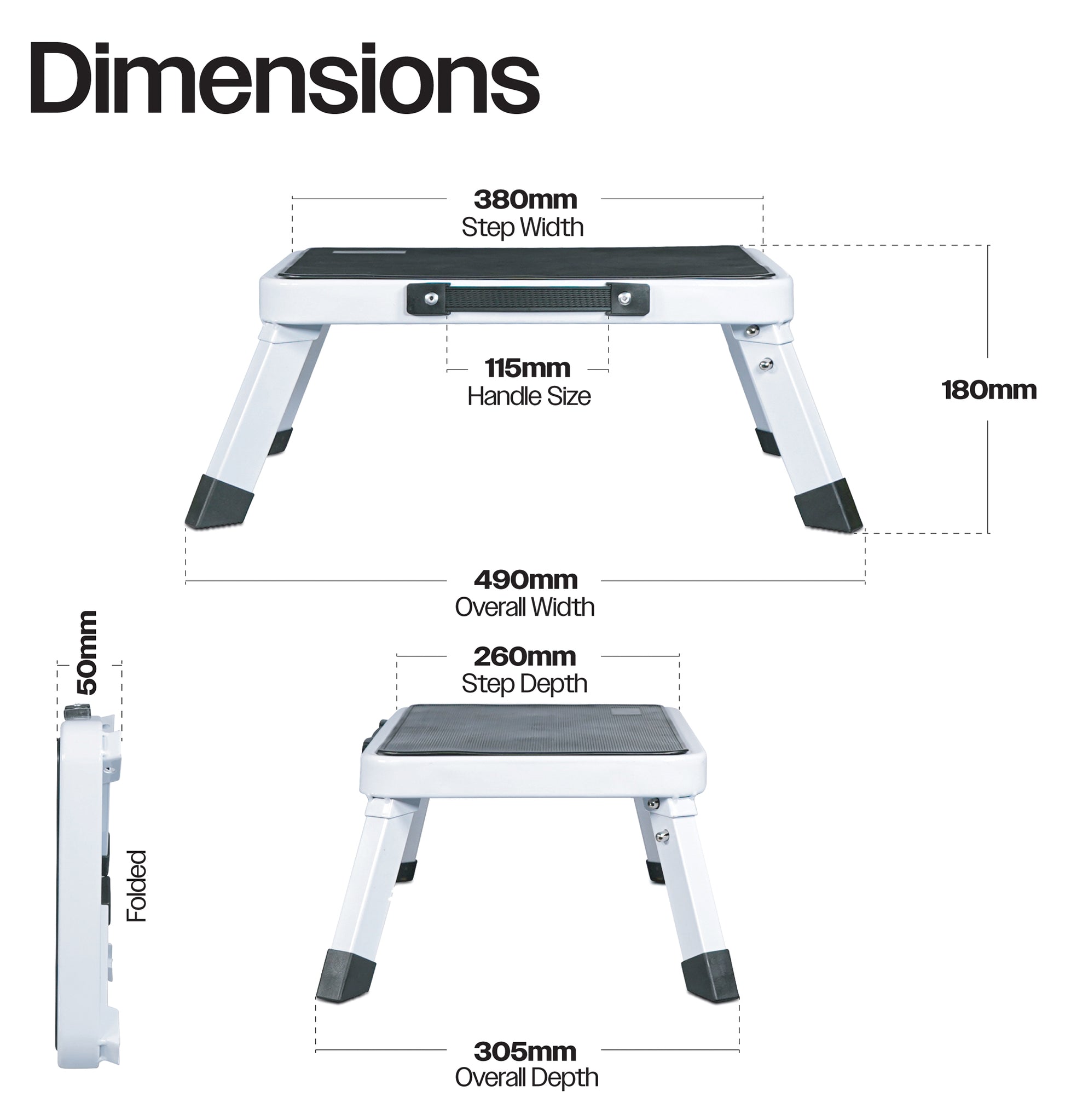 The Bestfor Folding Single Step Stool is your perfect companion for indoor and outdoor use, offering a stable, lightweight, and compact solution for reaching higher places. Built with durable steel and a robust design, it supports up to 150kg and features a wide, textured non-slip foot step and rubber feet for maximum safety. Whether you're in a caravan, mobile home, RV, or using it for camping, bath access, or hot tubs, this small yet strong step stool folds easily for convenient storage and portability.