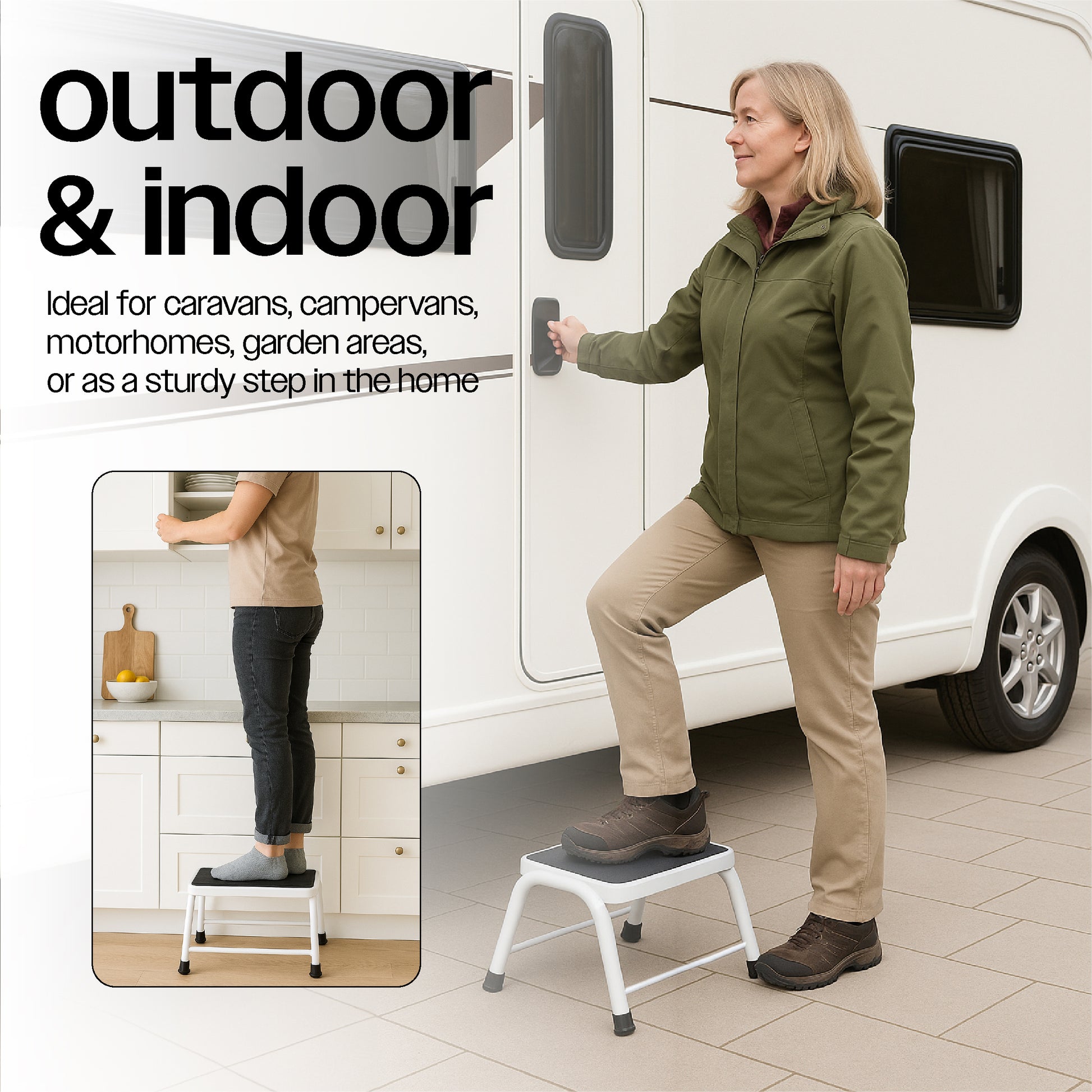 The Bestfor single step stool offers a stable, safe boost wherever you need it, with an extra wide textured non-slip foot step and non-slip rubber feet to ensure secure footing. Built from durable steel to support up to 150kg, this robust step stool is perfect for caravans, mobile homes, RVs, camping trips, hot tubs, and bath use. Lightweight and easy to carry, it provides a convenient way to access higher spaces or step in and out safely, combining practicality with a strong design you can rely on.