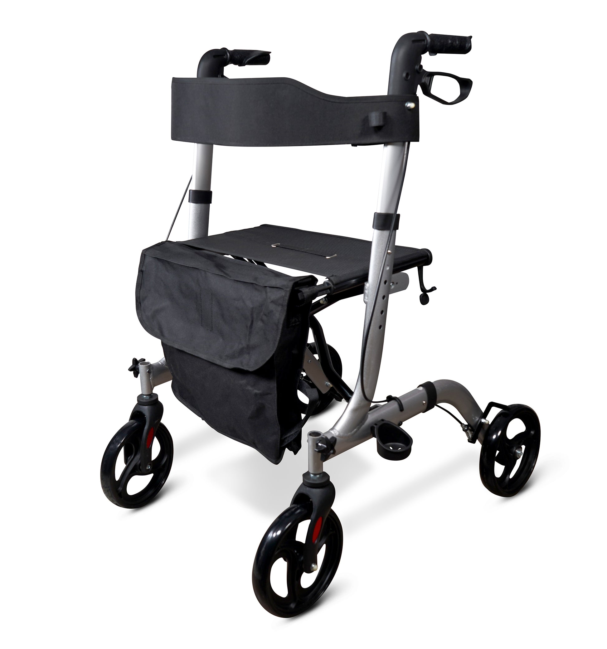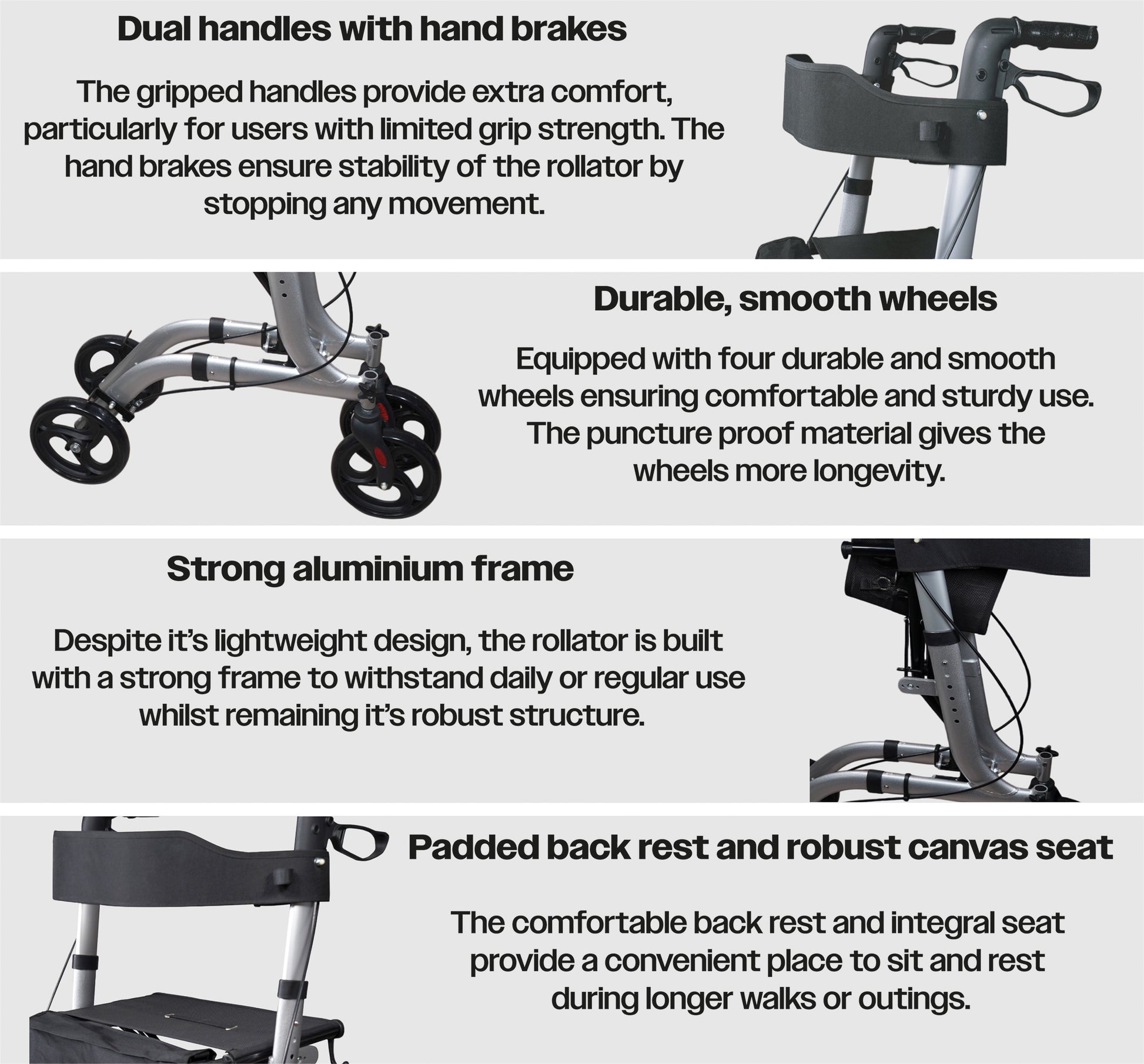 Lightweight Aluminium Rollator with Seat, Backrest & Bag – Adjustable Height, Folding 4-Wheel Walker (8.95kg)