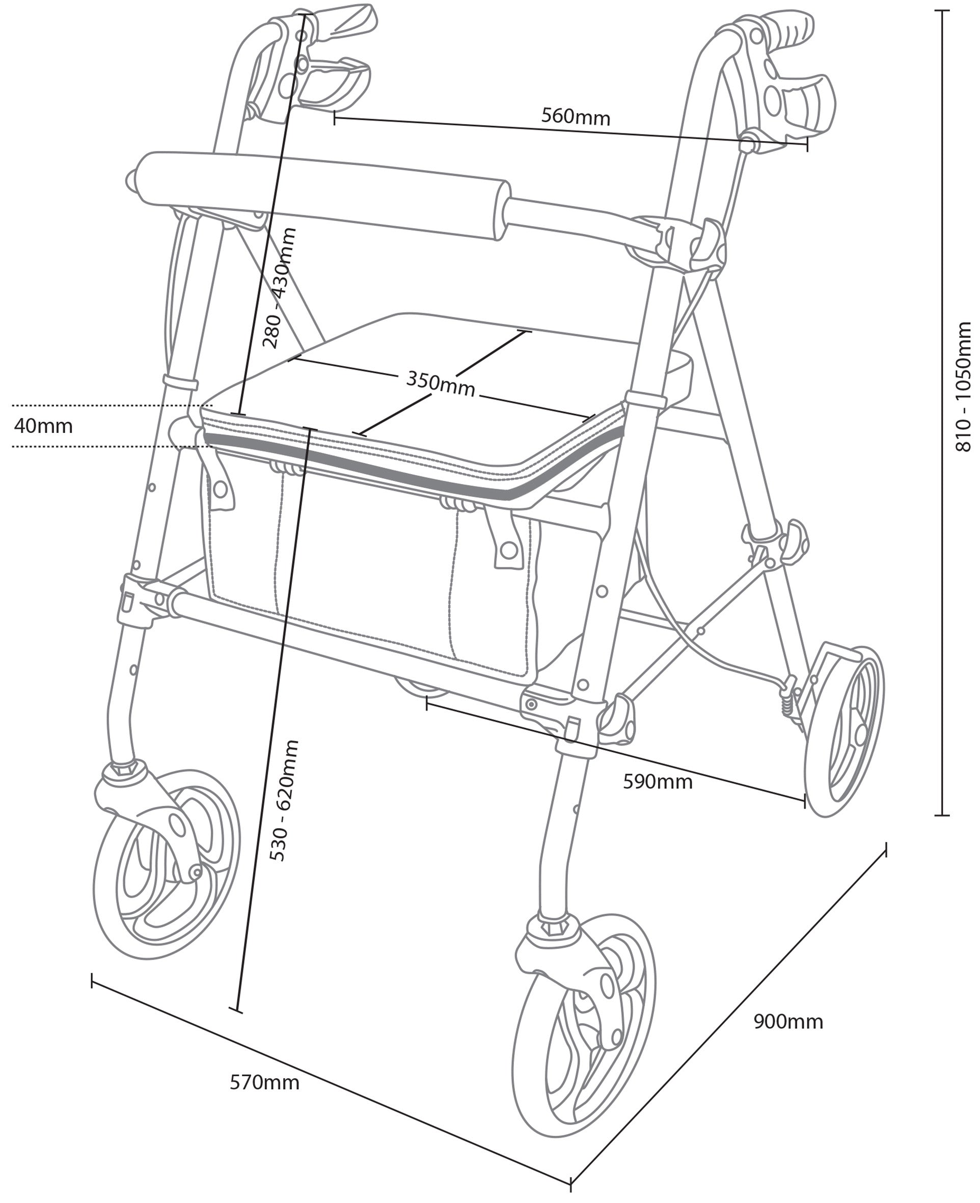 šĀ Fully Height AdjustableĀ ā Ergonomic handles adjust easily using arthritis-friendly fixings, while the rollator legs also adjust in height via a simple push-pin mechanism for the perfect fit