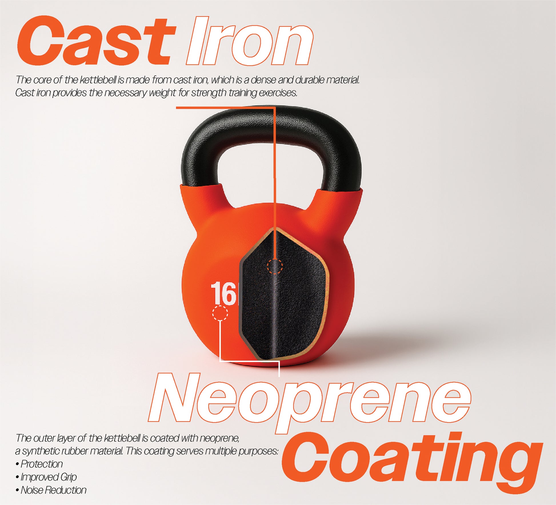 The Neoprene Kettlebell - Available in a range of weights from 4kg to 20kg is best suited for environments such as homes, offices, or while traveling, depending on your needs.