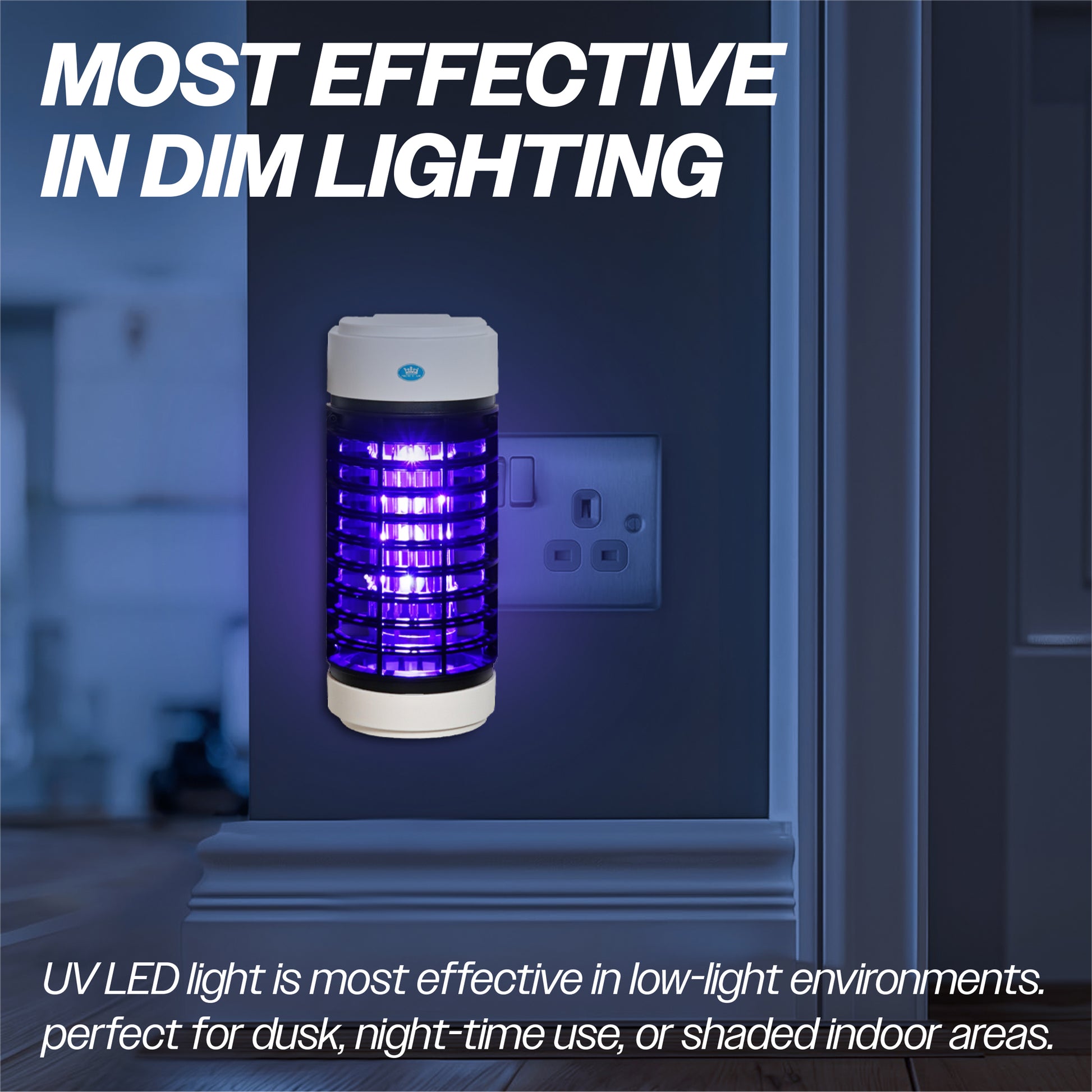 This Plug-In Insect Killer features bright UV-A LED tubes in the centre which will attract flies and other flying insects destroying them quickly. This unit is designed to be eco-friendly as it does not utilise harmful chemicals making it perfect for homes with children and pets. The overall coverage is a massive 50m2. Fitted with a removeable collection tray for easy cleaning. The cage is made from ABS fire resistant plastic for safety. The insect killer is designed for use indoors in any room in your home. The insect killer has a dual voltage design, working from 100V to 230V. Simply plug in and go.