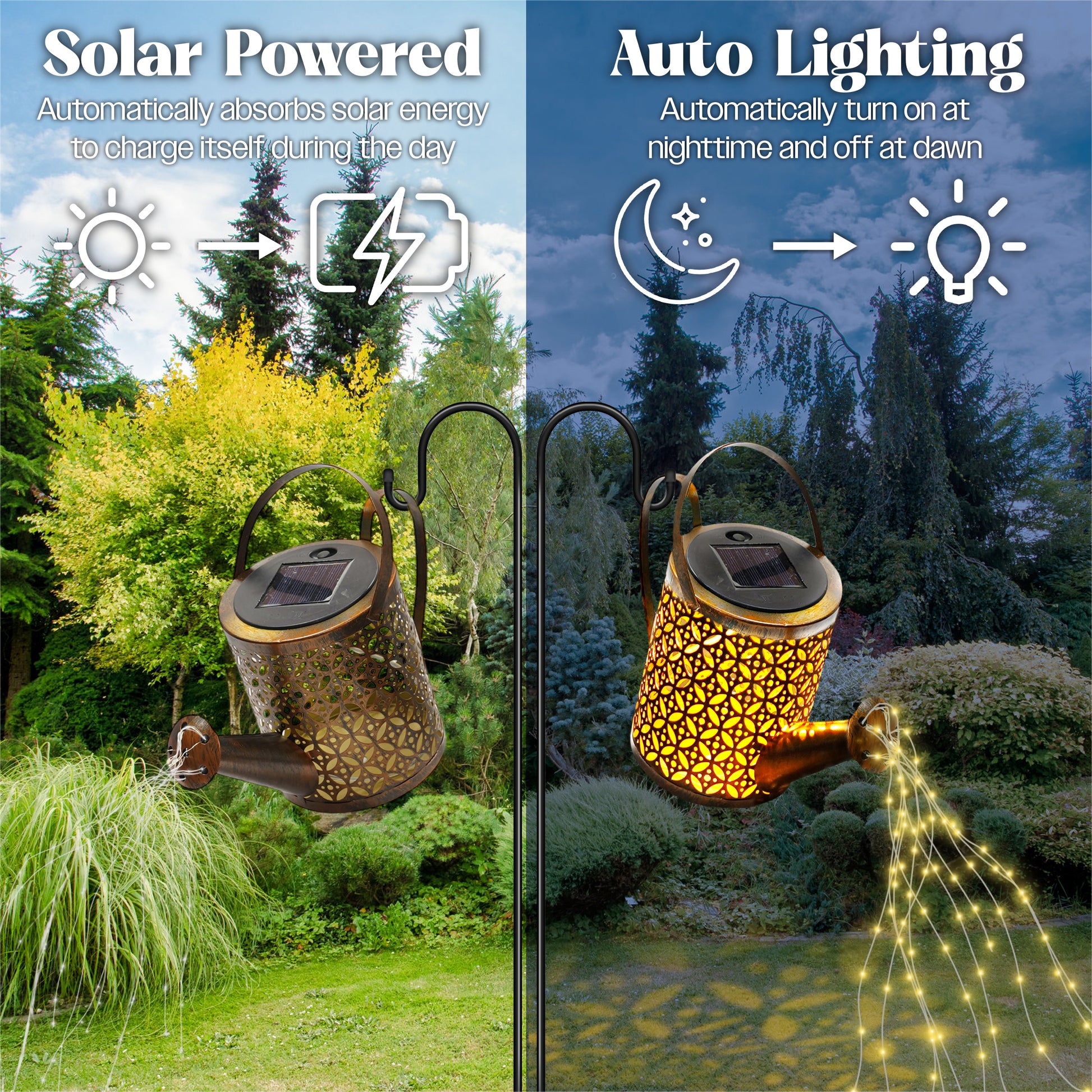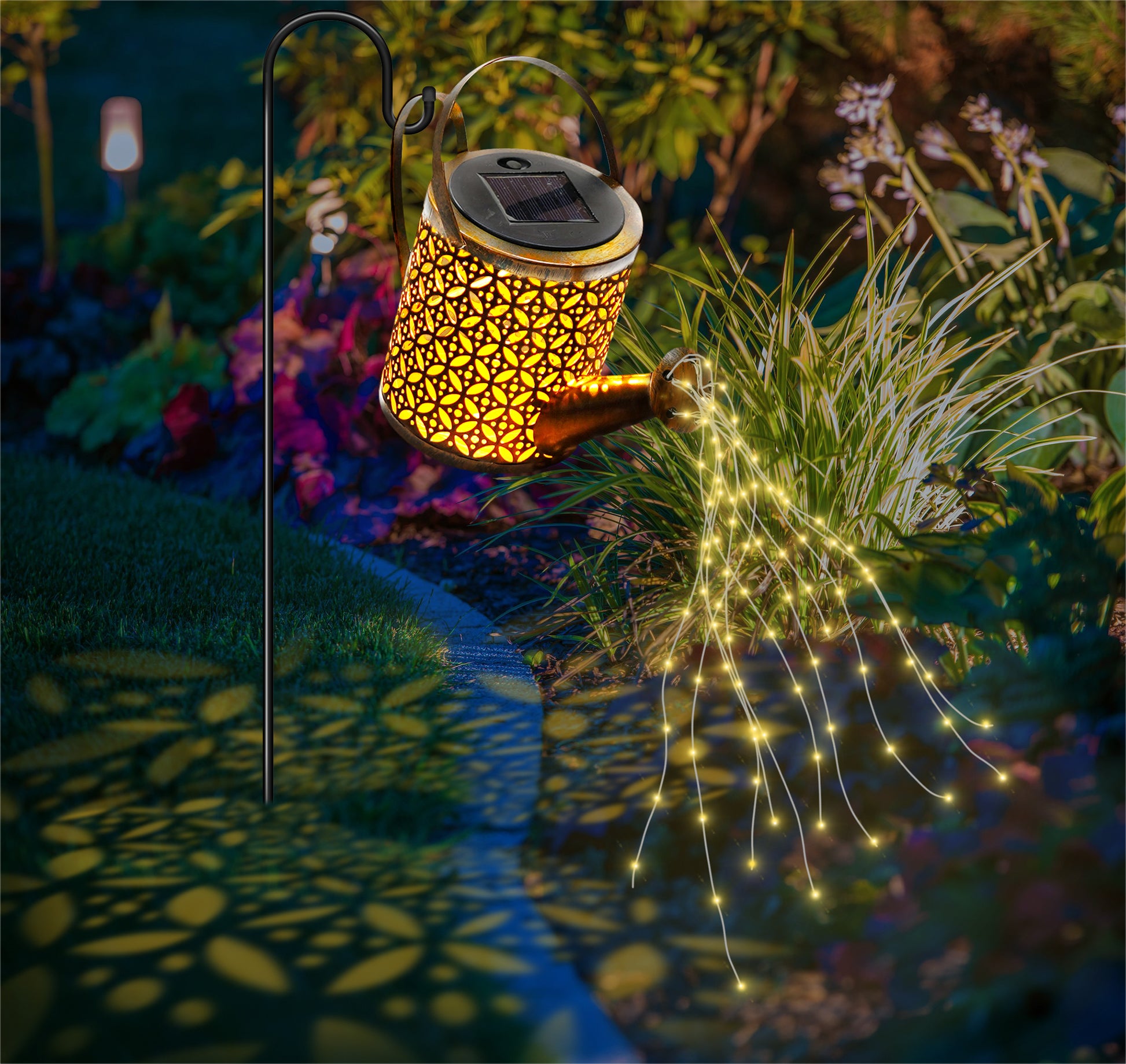 Solar Powered Watering Can with LED String Lights