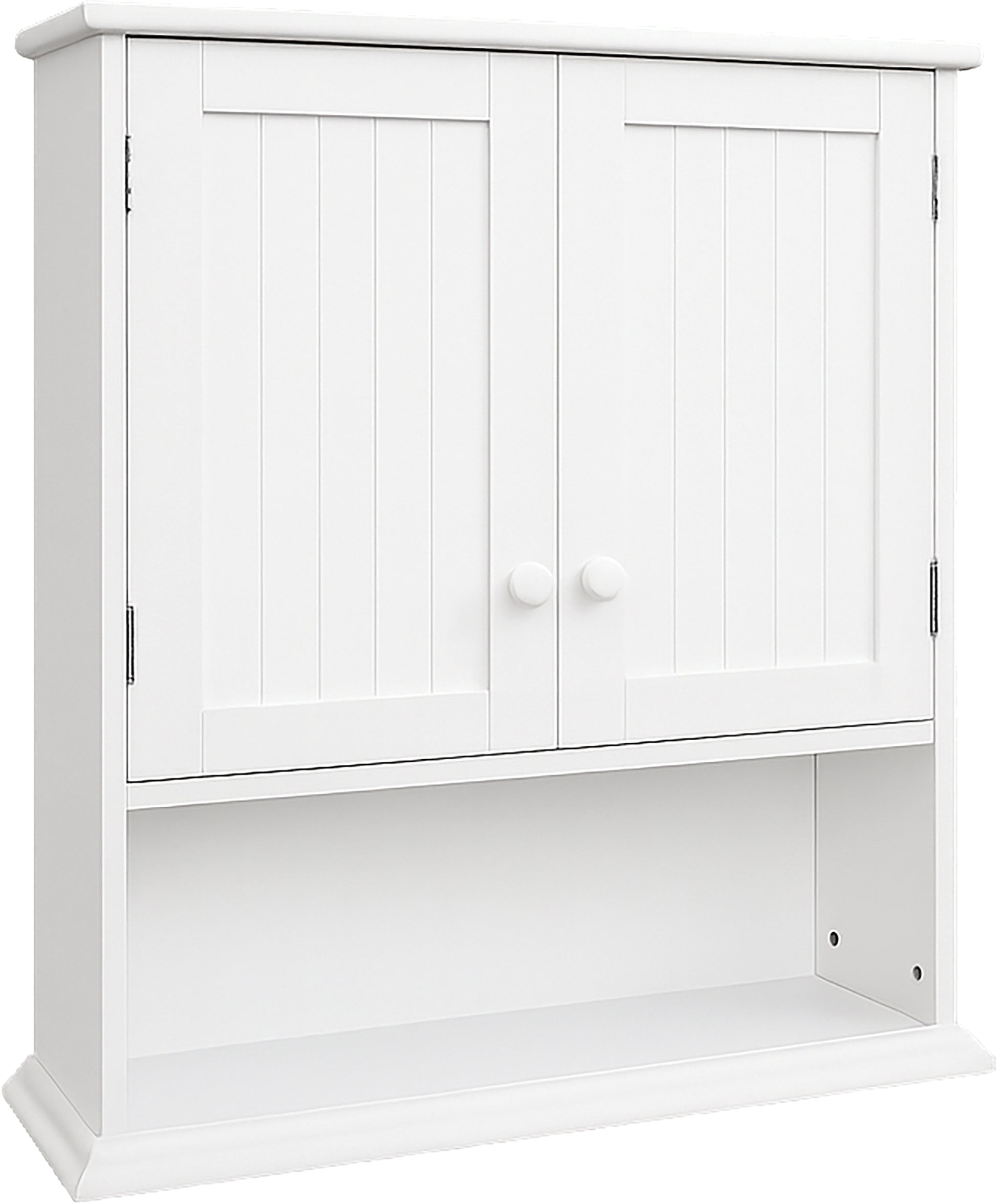The wall mounted bathroom cabinet from St Helens Home and Garden is the perfect mix of style and functionality and will enhance the look of any bathroom. The cabinet features 2 doors that open to reveal an abundance of storage space which includes a shelf and a further shelf underneath to store items that are needed everyday such as toothbrushes and soap. The cabinet is white with matching white handles to give a stylish and clean looking finish.